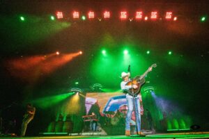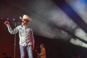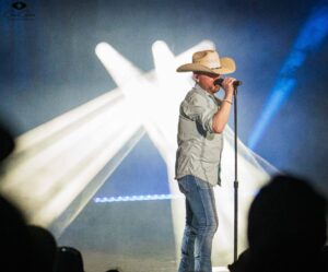 Reno, NV (3-20-25) – Hot on the heels of his 13th Number One song with ‘This Is My Dirt,’ Justin Moore’s “Time’s Ticking” tour rolled into Reno, Nevada. With a stage that’s set up with whiskey barrels and chandeliers adorned with antlers, it’s akin to a honky-tonk or possibly a hunting lodge, it was only fitting for the show to be kicked off with ‘Bait a Hook‘. With the crowd on their feet and sounding as if he’s ten foot tall and bulletproof, Moore quickly followed ‘Hook’ with ‘You Look Like I Need Drink.’ Justin Moore’s 17-song set was chock full of country swagger, southern charm, and high energy, as well as hits, which kept the entire crowd on their feet for the entire show. Moore’s current tour (“Time’s Ticking”) shares the same name as his latest single from his 2024 album titled “This Is My Dirt.” ‘Time’s Ticking‘ shares the same small-town, America values as the ‘This Is My Dirt’ single. If you’re a fan of good Country Music with wholesome meaning, I strongly recommend that you give ‘Time’s Ticking’ a listen. Be sure to check out a Justin Moore show in a town near you because, after all, ‘Time’s Ticking’.